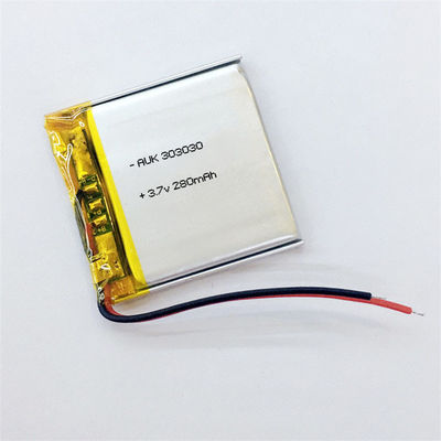 Lityum polimer pil AUK 303030İsimlendirilmiş voltaj 3.7V, şarj voltajı 4.2V, nominal kapasite 280mAh.